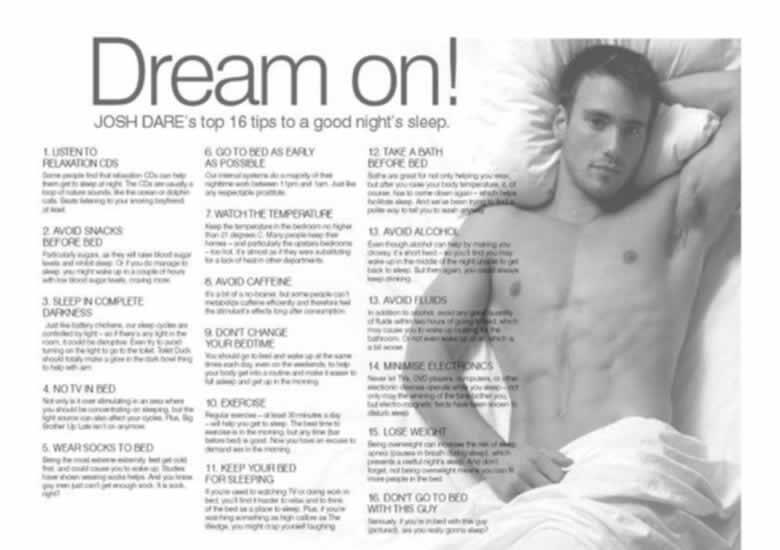 JOSH DARE’s top 15 tips to a good night’s sleep.1. Listen to relaxation CDs